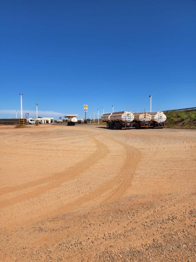 Próximo a indústrias e ao lado de um posto Shell.